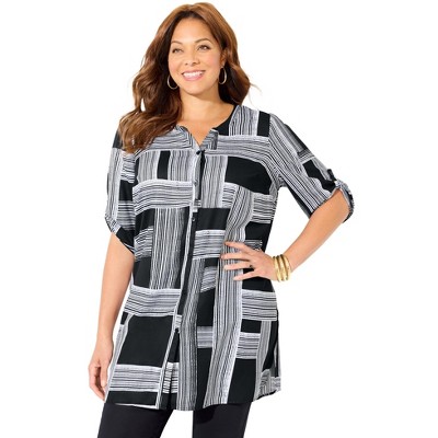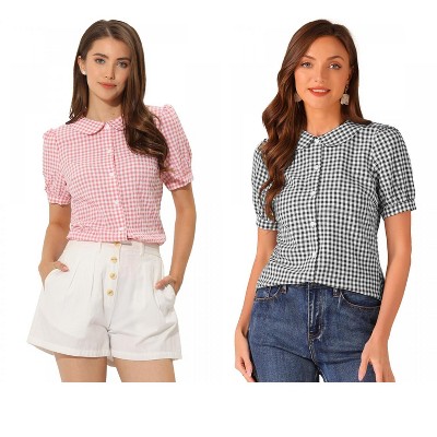 Clearlove Women's Casual Contrast Collar Shirt Long Sleeve Slim Fit Tunics Top
