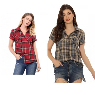 Womens Button Down Flannel Shirts Long Sleeve Plaid Shackets Business Casual Blouse Top