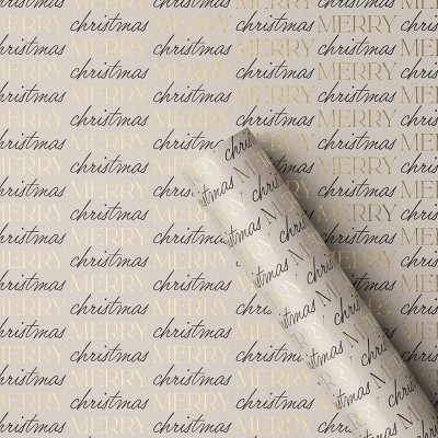30" 25 sq ft Christmas Roll Wrap Black/Gold Merry Christmas on Gray - Wondershop™