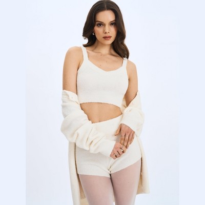 Miss Circle Selene White Wool-Blend Ribbed Knit V-Neck Top