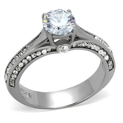 Slickblue Women’s Engagement Ring, Silver Stainless Steel, 6 mm CZ Center Stone, Pave Band with Side Accents, Size 5-10