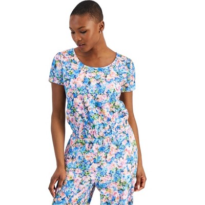 bar III Womens Floral-Print Basic T-Shirt