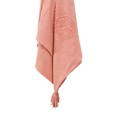 HomeRoots 50" X 60" Rust Woven Cotton Striped Throw Blanket with Tassels