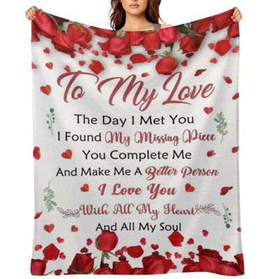 Valentines Day I Love You Rose Print Blanket, Soft Throw, Romantic Anniversary Birthday Gifts for Her Wife Girlfriend 40x50 inches