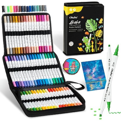 Ohuhu Acrylic Paint Markers Dual Tips: 72 Colors Brush & Dot Paint Pens High Opacity Acrylic Markers Waterproof Lightfast