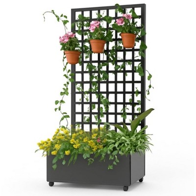 iMountek"62.99in Raised Garden Bed Planter Box with Trellis, Wheels & Self-Watering for Climbing Plants"black