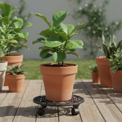 NAYSAYE Planter Rustic Black Trolley Cart Plant Stand for Indoor Outdoor Garden, Brown and Black, 24.4"*12.6"*15.4"