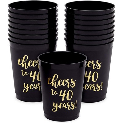 Sparkle and Bash 16 Pack 40 Birthday Party Cups for Cheers to 40 Years, 40th Birthday Decorations for Men and Women, 16 oz