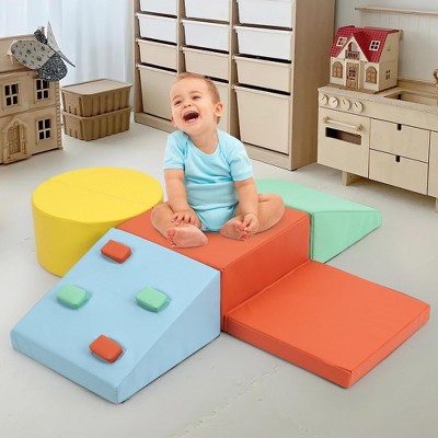 5-Piece Baby Soft Play Set, Indoor Foam Playground for Toddlers, Climbing Crawling Sliding Building Blocks, Montessori Activity Toys