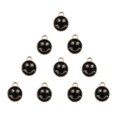 John Bead 10 Pieces 10x13mm Black Happy Face Sweet & Petite Mini Cute Charms for Jewelry Making DIY Crafts