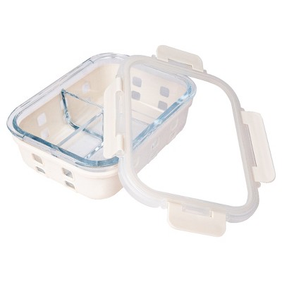 Lexi Home 35 oz. 3-Compartment Glass Containers with Cream Silicone Sleeves