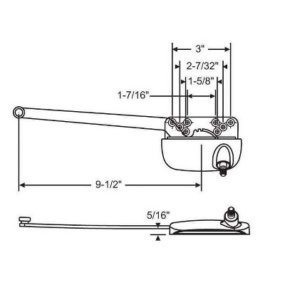 Brixwell 36-128-10E Single Arm Ellipse Casement Operator Black 9-1/2 inch Arm 3 inch Mount 2-7/32 inch Spacing 5/16 inch Thick