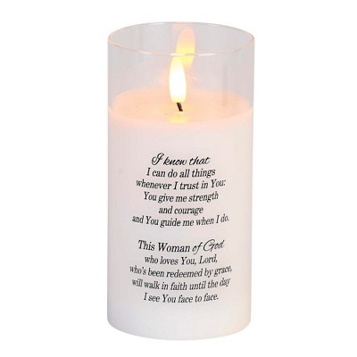 Dicksons DPGC-04-100WH She is Clothed with Strength and Dignity White 4 x 3 Glass Encouraging Flameless LED Candle
