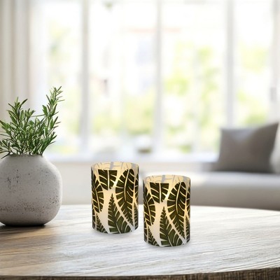 Northlight 4" Deer, Pine and Snowflakes Hand Painted Flameless Glass Candle Lantern