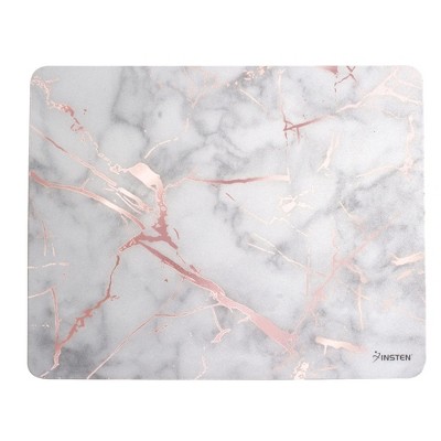Insten Reflective Marble Design Mouse Pad - Anti-Slip Mat for Wired/Wireless Gaming Computer Mouse, White/Rose Gold