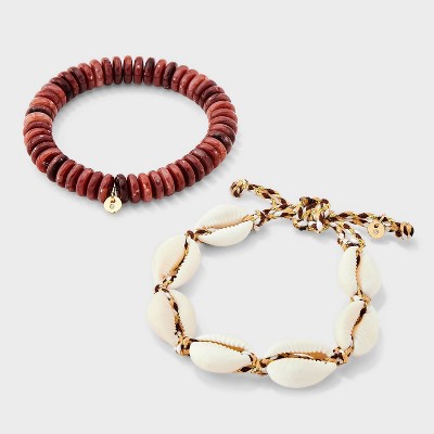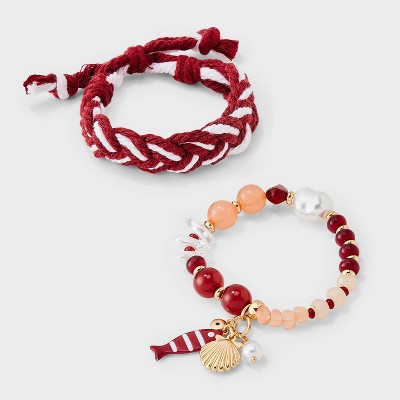 Beaded Shell Adjustable Corded Bracelet Set 2ct - Universal Thread™ Red