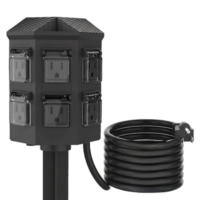 Itopfox Outdoor Power Strip 25 FT Heavy Duty Extension Cord with 6 Grounded Outlets Waterproof Covers Stake for Yard Decorations 1 Piece