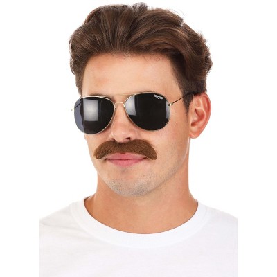 HalloweenCostumes.com One Size Fits Most Men Top Gun Sunglasses & Mustache Costume Kit | Movie Accessories, Brown/Black