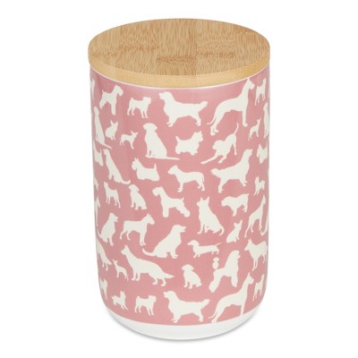 Amici Pet Chance Diamond Metal Canister - 52 Oz Stainless Steel Food Safe Storage with Silver Bone Handle Lid, Decorative Container - (6" H x 4.5" W)