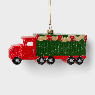 Semi Truck and Trailer Christmas Tree Ornament Red/Green - Wondershop™