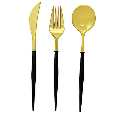Trendables Gold Plastic Silverware | Heavy-Duty Disposable Utensils Collection | Forks, Spoons, Knives & Combo Sets for Parties and Events