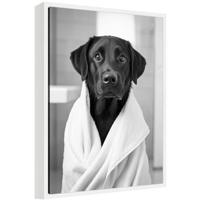 Kate and Laurel Black Lab Bathroom Art Towel Robe Black and White Framed Canvas by The Creative Bunch Studio, 18x24, White