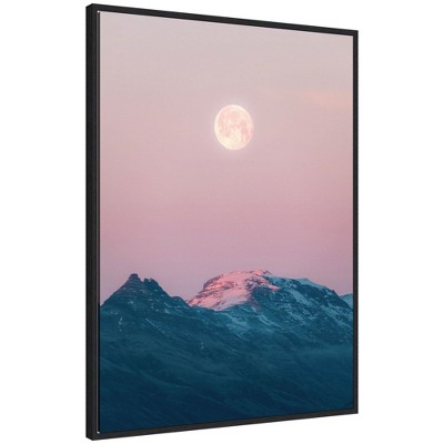 Kate and Laurel Pastel Moonrise over Icelandic Mountains Framed Canvas by Michael Schauer, 28x38, Black