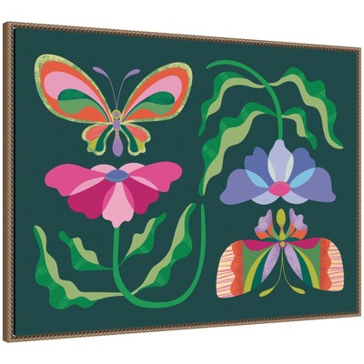 Kate and Laurel Floral Butterflies by Rachel Lee Framed Canvas Wall Art Print, 38x28, Beaded Dark Gold