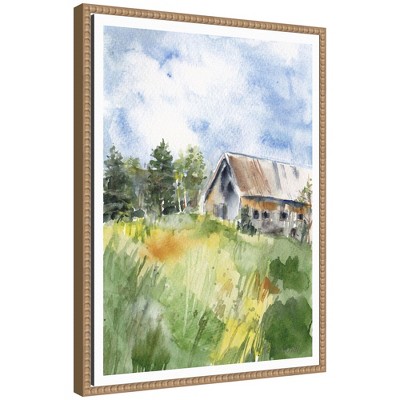 Kate and Laurel Vermont Barn in Summer Framed Canvas by Patricia Shaw, 18x24, Beaded Rustic Natural