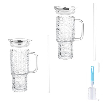 Itopfox Mason Jar with Lid and Straw, 24 oz Iced Coffee Cup with Bamboo Lid, Reusable Glass Tumbler for Boba, Smoothie, Wide Mouth Cups with Straws