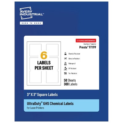 Avery UltraDuty GHS Labels, Waterproof, 3 X 3 Inch Square Labels, for Use with Laser Printers