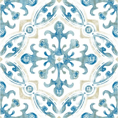NuWallpaper Florentine Tile Peel & Stick Wallpaper Blue: Self-Adhesive Vinyl, Damask Medallion, Washable, 4.5 Sq Ft Coverage