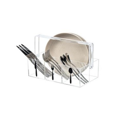 Acrylic Utensil Caddy with Handle – Clear Plastic Silverware Organizer,Flatware Holder & Paper Plate Dispenser for Kitchen,Parties&Picnic