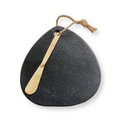 tag Marble Teardrop Serving Board with Spreader - Elegant Black Serving Tray for Entertaining - 7" x 7.25"