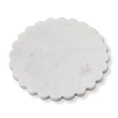 tag Scalloped Round Marble Serving Board 12x12 in White Hand Wash Ideal for Serving Trays and Platters Everyday Use