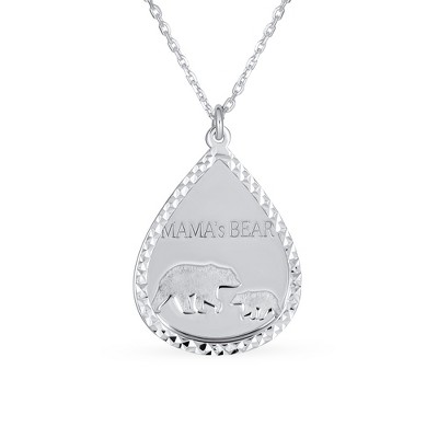 Bling Jewelry Mother Day Diamond-Cut Bezel Teardrop Word MAMA BEAR Necklace Sterling Silver