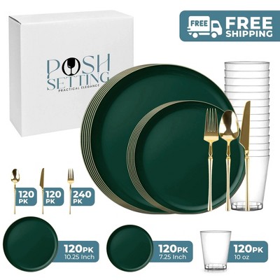 Posh Setting 840 Piece Emerald And Gold High End Plastic Party Bundle - Edge (120 Settings)