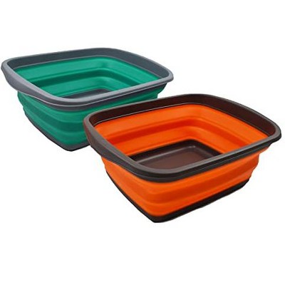 SAMMART 10L (2.6 Gallons) Set of 2 Collapsible Wash Tub, Bluish-Green + Orange