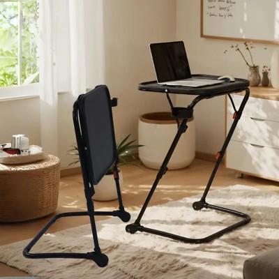FurnitureR Adjustable Folding TV Tray with 4 Height & 3 Tilt Angle, Foldable Dinner Trays Laptop Snack Table with Cup Holder Sofa, 1PC. Black