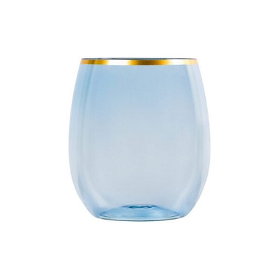 Posh Setting 12 oz Blue with Gold Rim Plastic Disposable stemless Wine goblet - 6 Pack