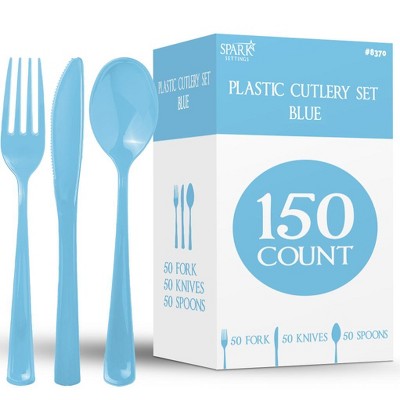 Trendables Emerald Plastic Dinnerware Set Serves 40 | Plastic disposable plates & disposable Gold fork Gold Spoons and Gold knives- 200 PCs