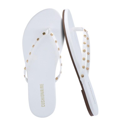 CUSHIONAIRE Voyage Cutout Strap Slides for Women, Slip On Summer Flats, Trendy Footwear, Comfortable Vacation Style Sandals for Women