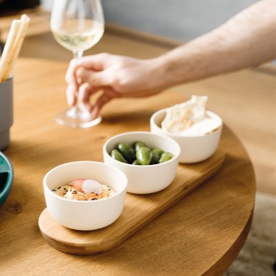 BergHOFF LEO Bamboo Serving Bowls Set with Tray, 9oz Each, White