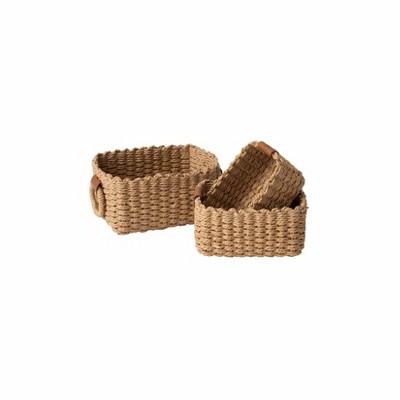 Simplify 3pc Rattan Tote Set with Sterling Silver Handles Charcoal: Decorative Storage Bins, No Assembly, Gray, 1084 Volume
