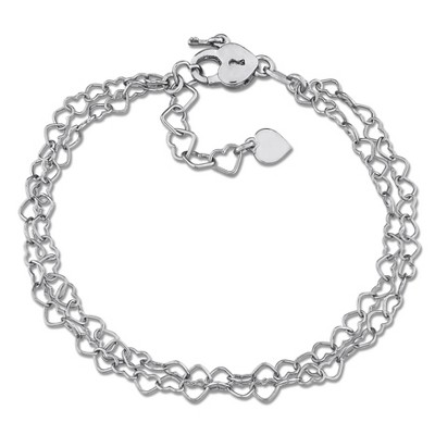 EVERLY JEWELRY | Sterling Silver Double Strand 3.5mm Heart Link Bracelet - 7.5 in