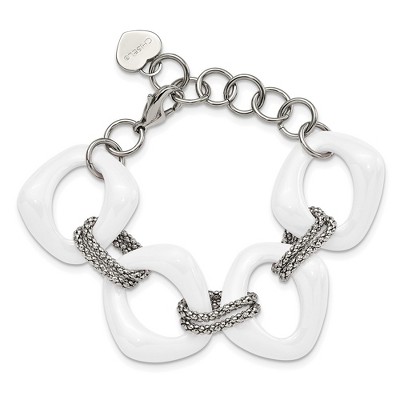Metallo Mens Stainless Steel Black and White Ceramic Link Bracelet - 8 Inch