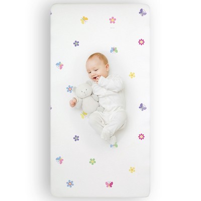 Lambs & Ivy Baby Blooms Watercolor Floral/Butterfly Cotton Fitted Crib Sheet
