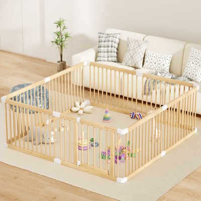 HOMLUX Large Wooden Baby Playpen, Adjustable Gate for Toddler and Babies, Sturdy Fence with Door, Safe Kids Activity Center