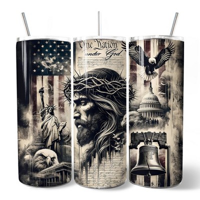 Patriotic Christian 20oz Personalized Tumbler With Lid and Stainless Steel Straw, One Nation Under God Gift Cup (NON-CUSTOM) | OrnamentallyYou