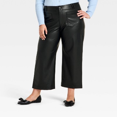Women's Mid-Rise Barrel Leg Faux Leather Pull-On Pants - A New Day™